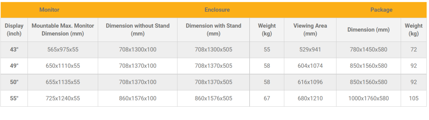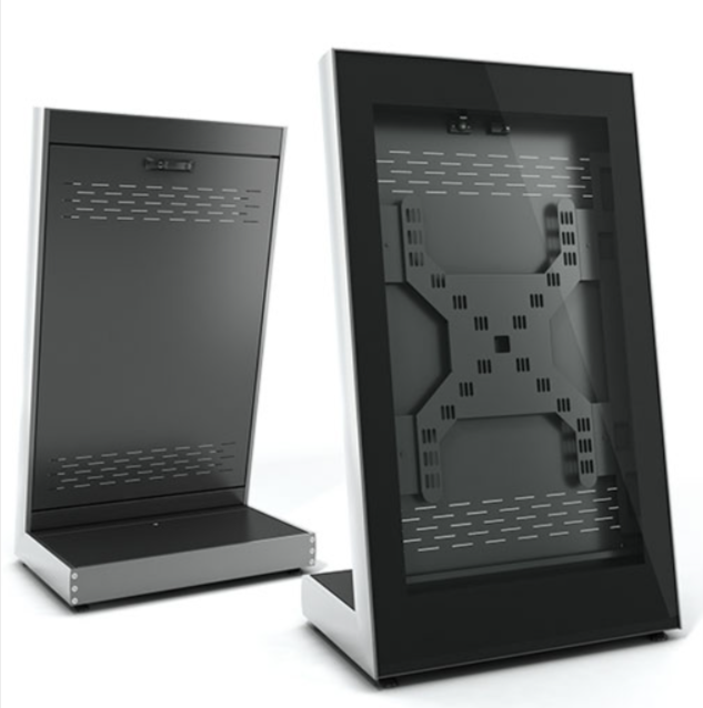 Indoor Stele Portrait, 43" Bildschirm, schwarz ohne Monitor, Metall-Aluminium, Sicherheitsglas