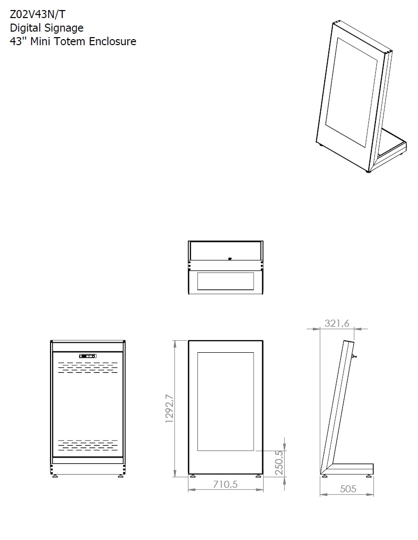 Indoor Stele Portrait, 43" Bildschirm, schwarz ohne Monitor, Metall-Aluminium, Sicherheitsglas... mehr