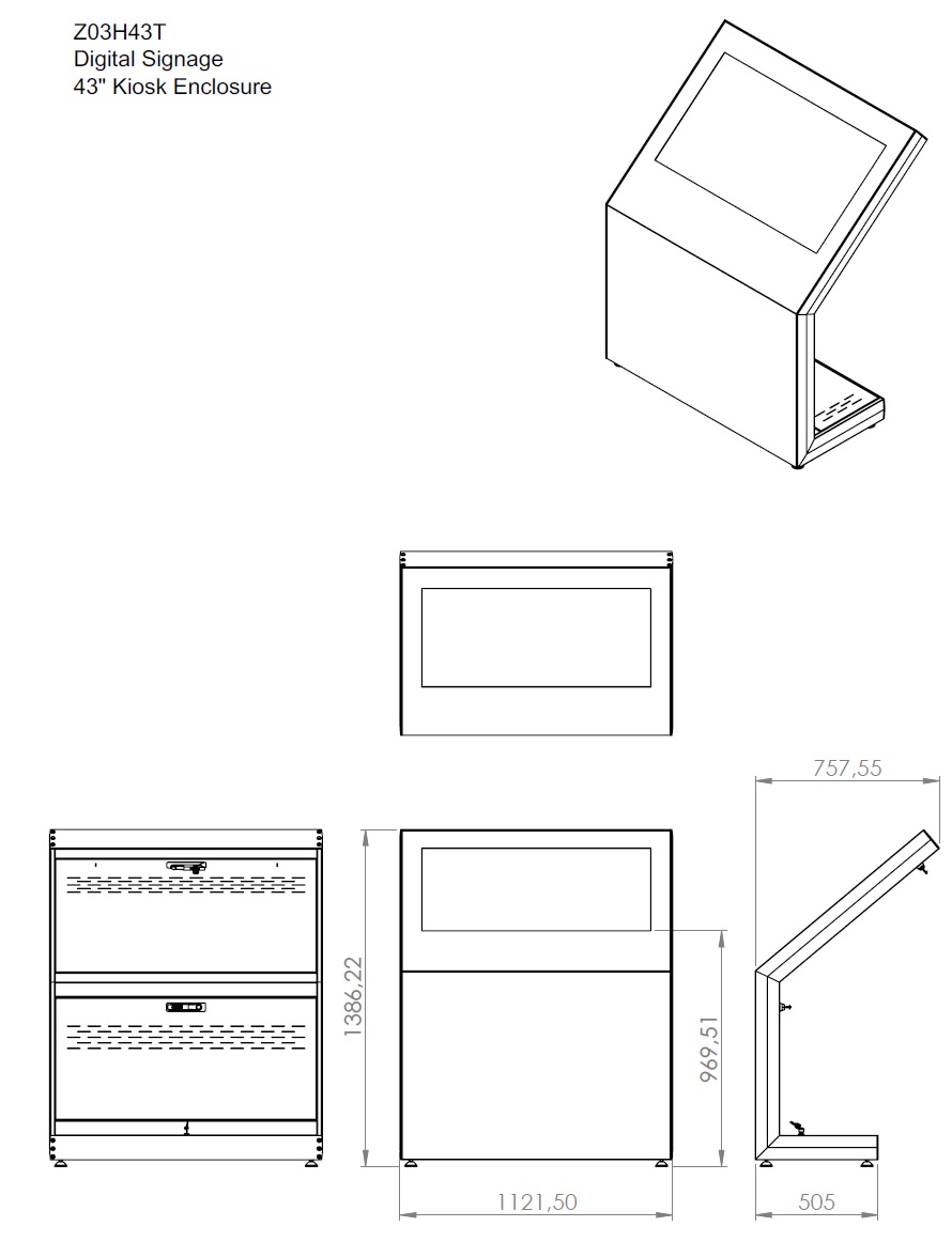 Indoor Stele Landscape, 43" Bildschirm, schwarz ohne Monitor, Metall-Aluminium, 10P Touchfolio,