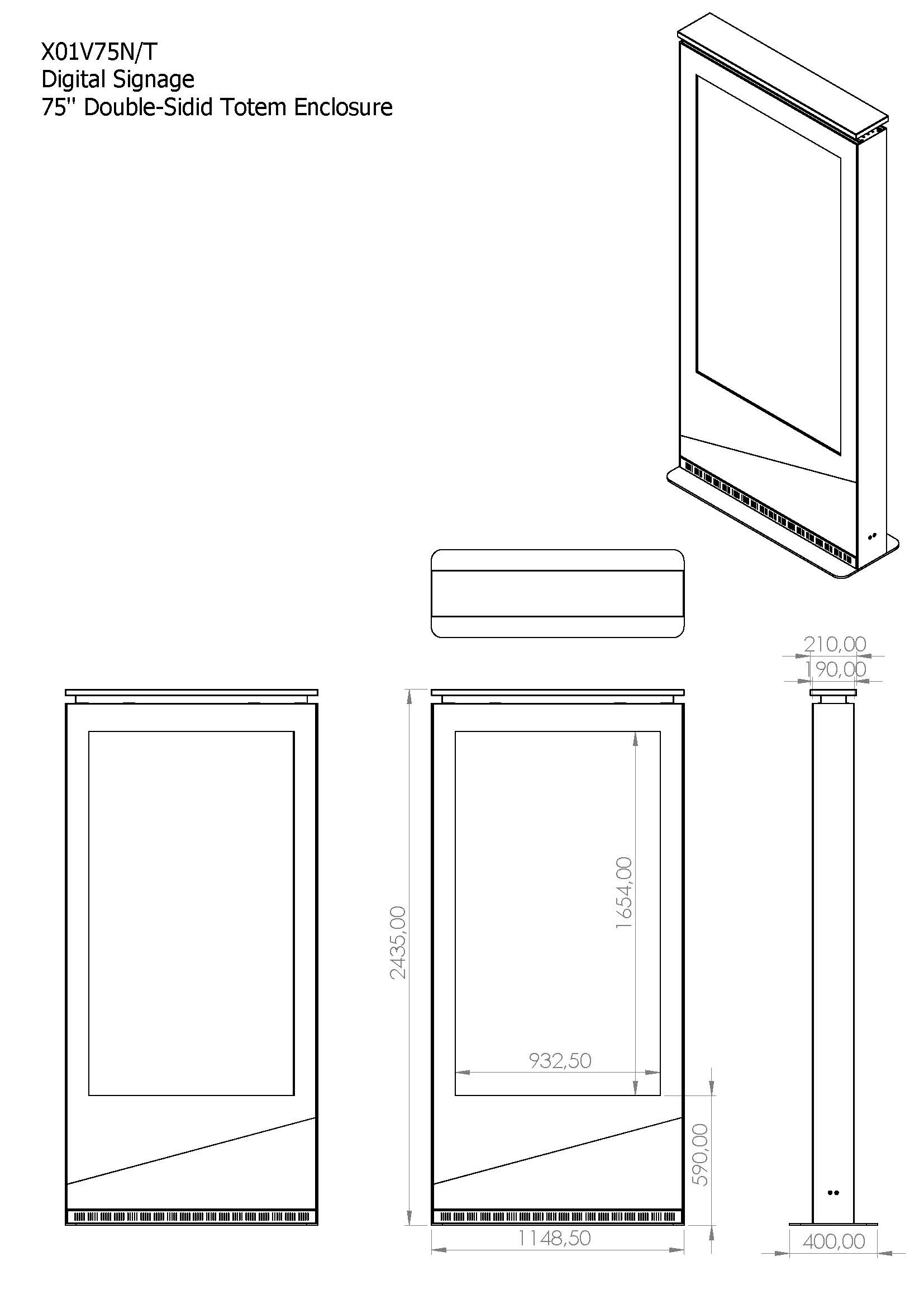 Indoor Stele Portrait, 75" Bildschirm Double Side, ohne Monitore, Aluminium-Metall