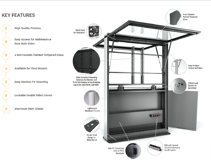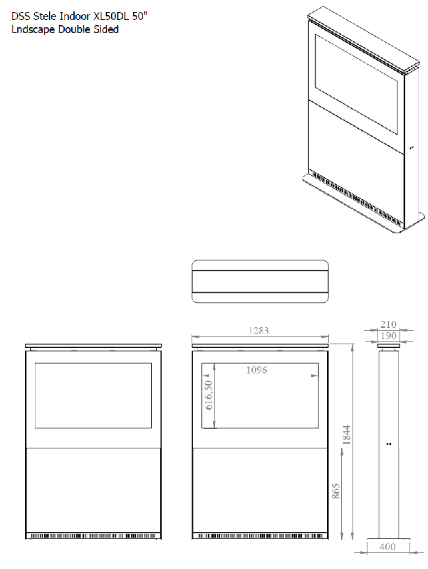 Indoor Stele Landscape, 50" Bildschirm, schwarz Double Sided, ohne Monitor, Metall-Aluminium