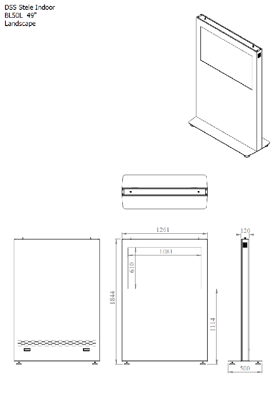 Indoor Stele Landscape, 49" Bildschirm ohne Monitor, Metall, ohne Glas, abschliessbar