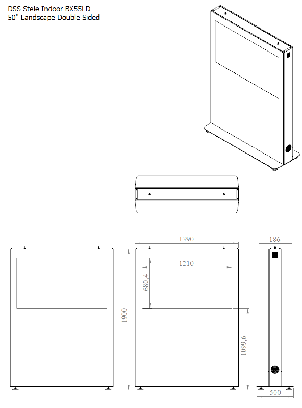 Indoor Stele Landscape, 55" Bildschirm Double Sided, ohne Monitor, nur Gehäuse ohne