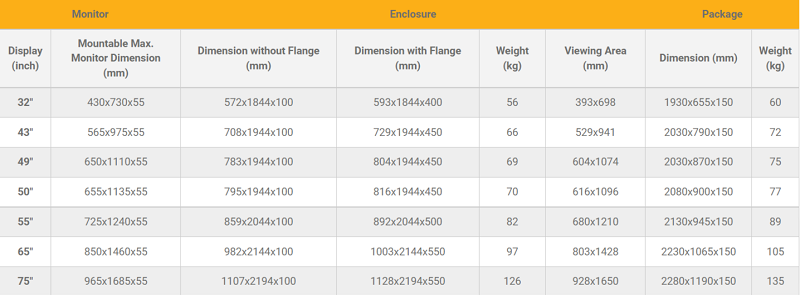 Indoor Stele Portrait, 50" Bildschirm, schwarz ohne Monitor, Metall-Aluminium, Sicherheitsglas