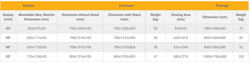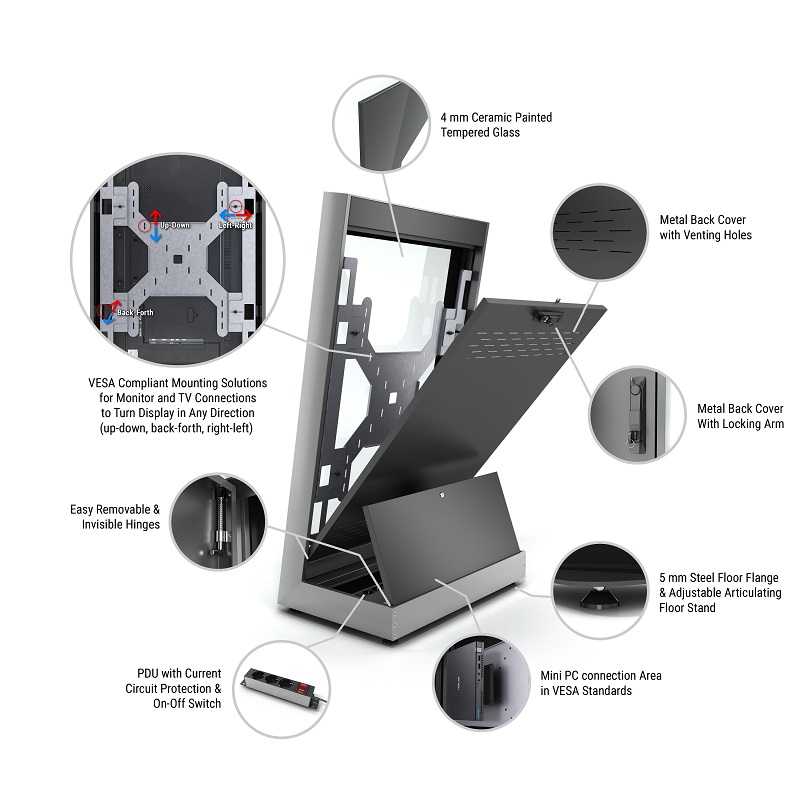 Indoor Stele Portrait, 50" Bildschirm, schwarz ohne Monitor, Metall-Aluminium, Sicherheitsglas