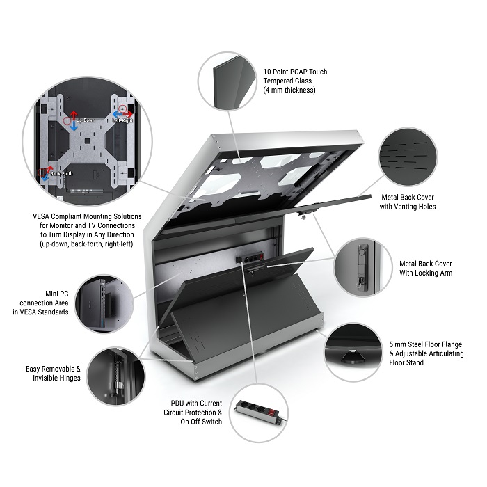 Indoor Stele Landscape, 50" Bildschirm, schwarz ohne Monitor, Metall-Aluminium, 10P Touchfolio,