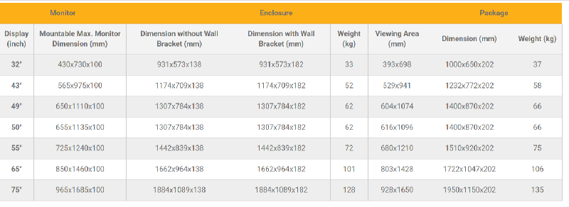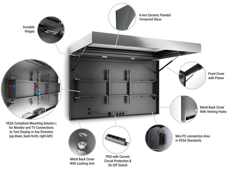 Monitorbox Landscape, 50" Bildschirm, schwarz ohne Monitor, Metall, 4mm Sicherheitsglas