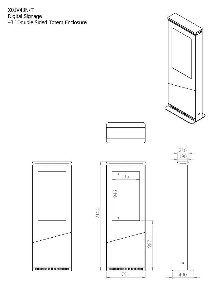 Indoor Stele Portrait, 43" Bildschirm Double Side, ohne Monitore, Aluminium-Metall