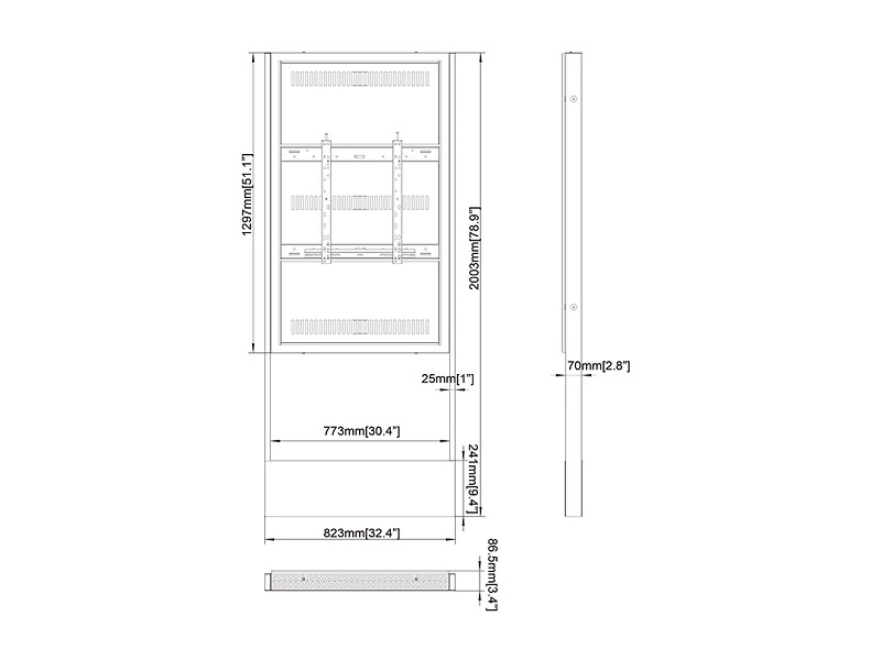 Stele ohne Monitor, Portrait, schwarz, 55"/4776 Max Vesa 500x400mm, Metall, Tragkraft 35kg