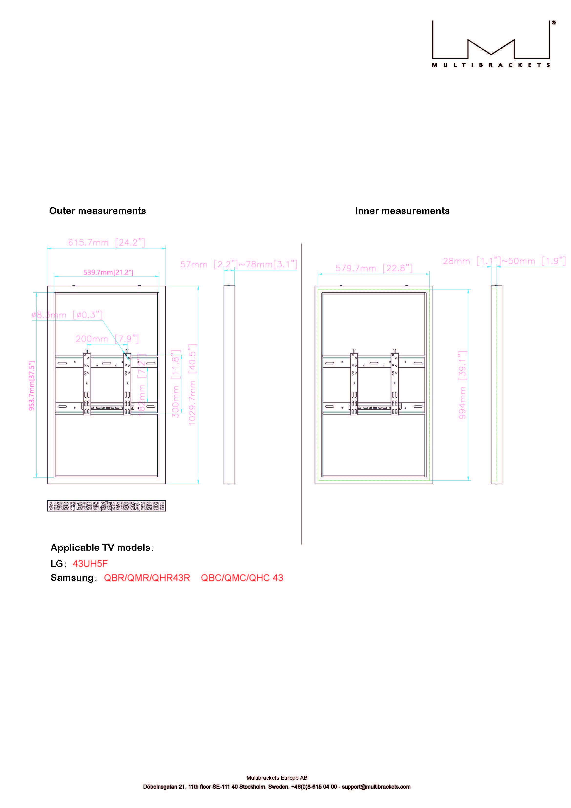Masse: 110x69x8.7cm,Vesa 200x200-600x400,