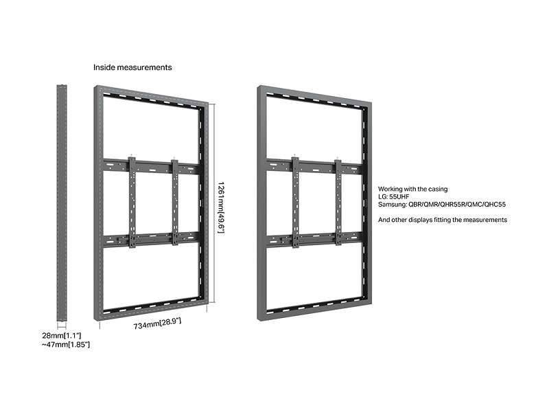 Monitor Rahmen Slim, Wandmontage, 55"/6695 zu LG 55UH5F, 55UH7N-E, Samsung QBR,QMR