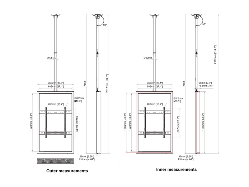 Weiterführende Links zu "Monitor Rahmen, Deckenmontage, 55"/7036"