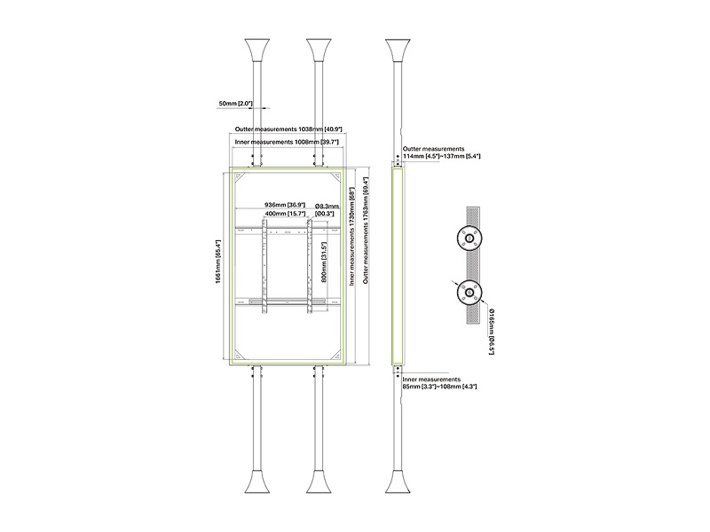Weiterführende Links zu "Monitor Rahmen, Boden-Deckenmontage, 75""
