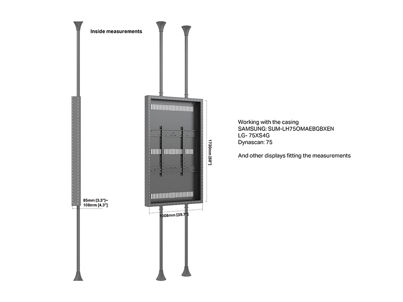 Monitor Rahmen, Boden-Deckenmontage, 75" High Brightness, für Samsung, Philips, LG, Sharp
