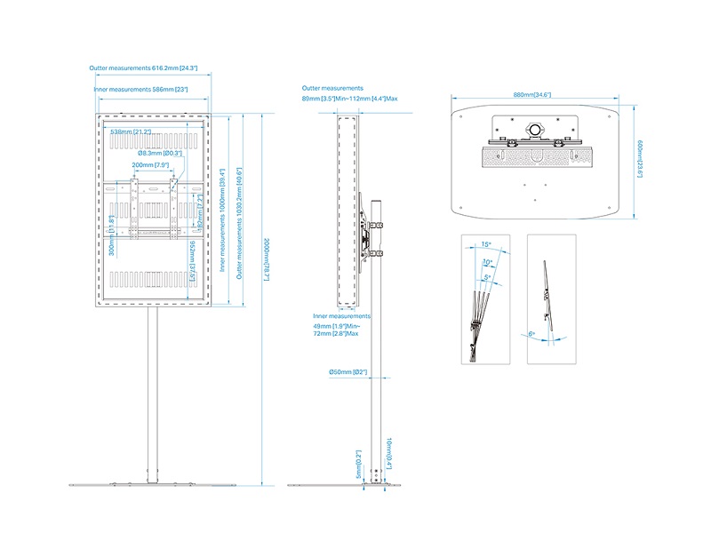 Stele ohne Monitor, Portrait, schwarz, 43"/9764 Max Vesa 200x300mm, Metall, Tragkraft 50kg