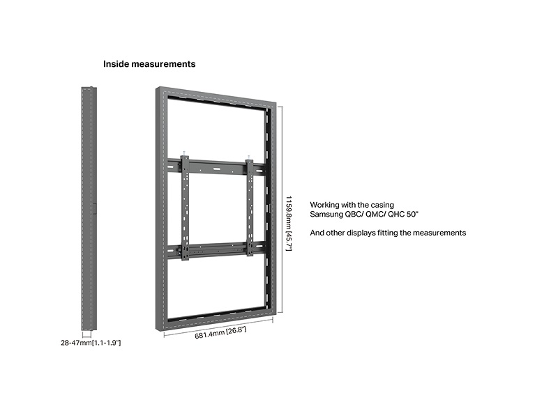 Monitor Rahmen Slim, Wandmontage, 50"/2421 schwarz, Samsung: 50" QM32C oder QM50R-T