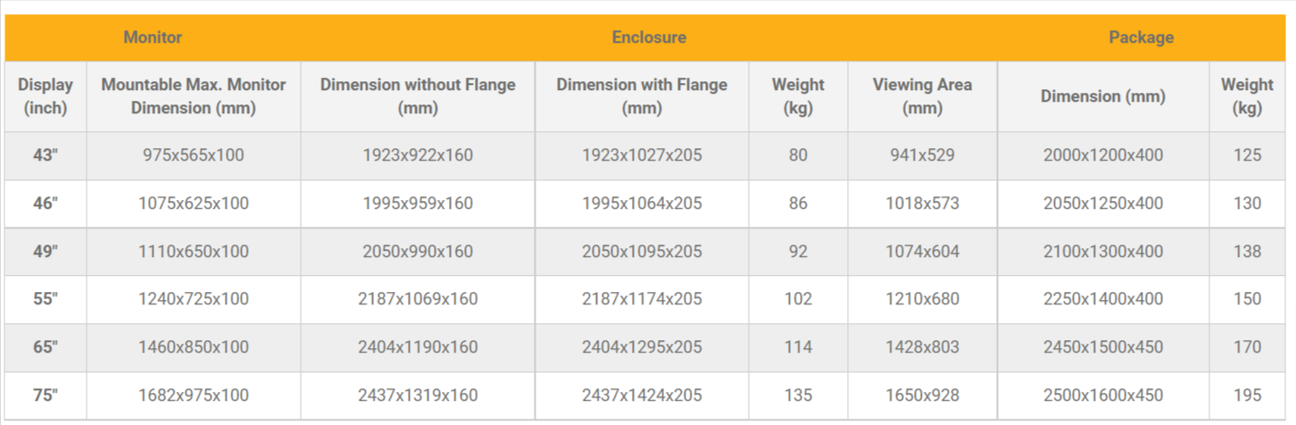 Outdoor Stele Portrait, 65" Bildschirm, schwarz ohne Monitor, rostfreier Stahl, 8mm gehärtetes... mehr