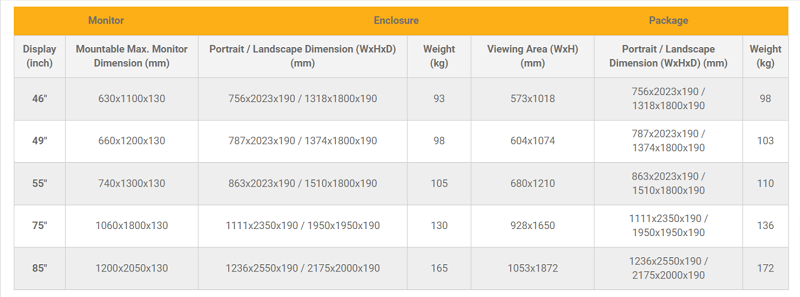 Outdoor Stele Portrait, 49" Bildschirm, Aluminium Gehäuse, Single sided ohne Monitor, IP 56