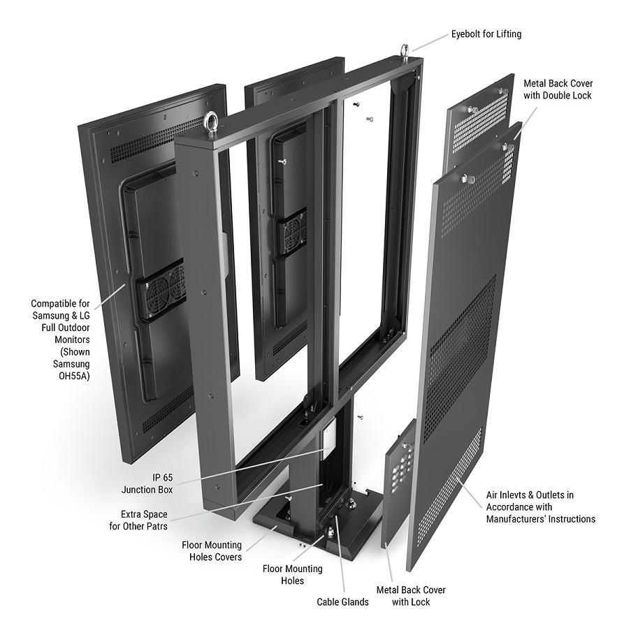 Outdoor Stele Portrait 2x55", Metall, Full Outdoor, geeignet für Samsung OH Serie, abschliessbar,