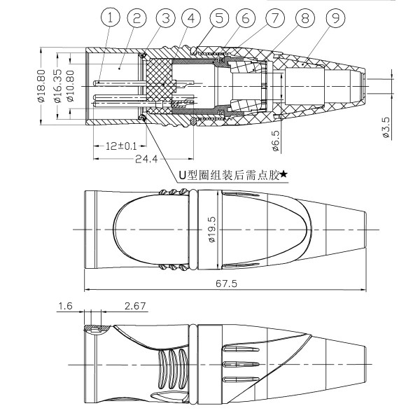 XLR Kabelstecker, Stecker, 5 Polig, schwarz IP67, Metallgehäuse, Lötanschluss, 78x22x22mm mehr