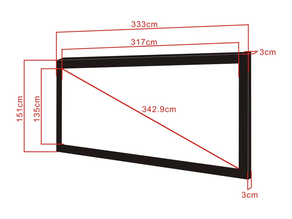 Masse Rahmen 333x151x3 cm, hochwertiges
