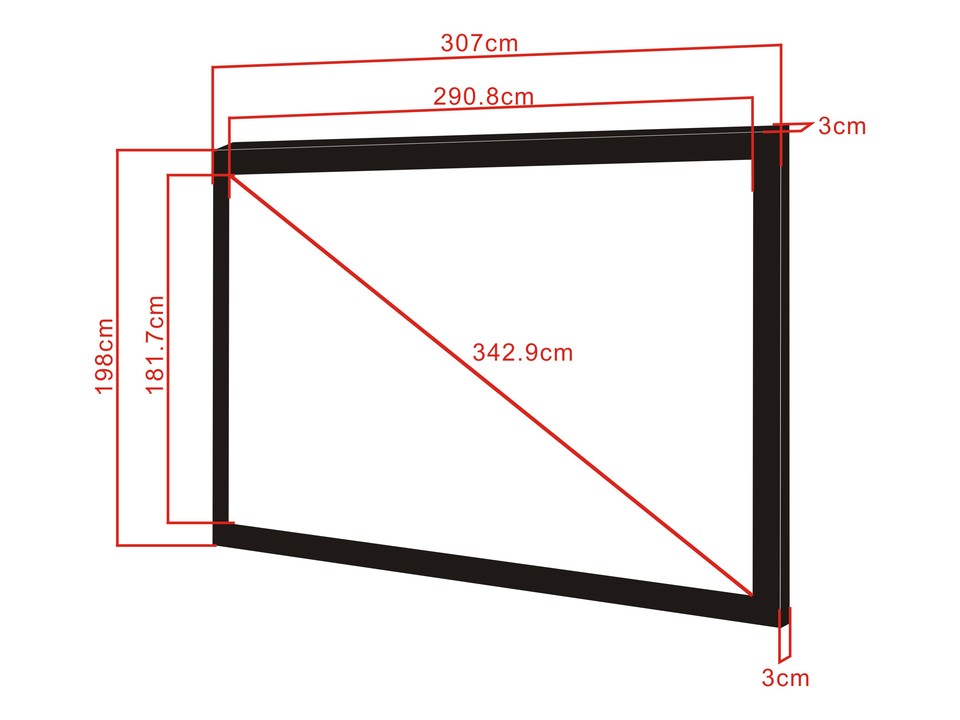 Rahmenleinwand 16:10,weiss, 135",Gainfactor1.0 Masse Tuch 290.8x181.7cm, diagonal 342.9cm