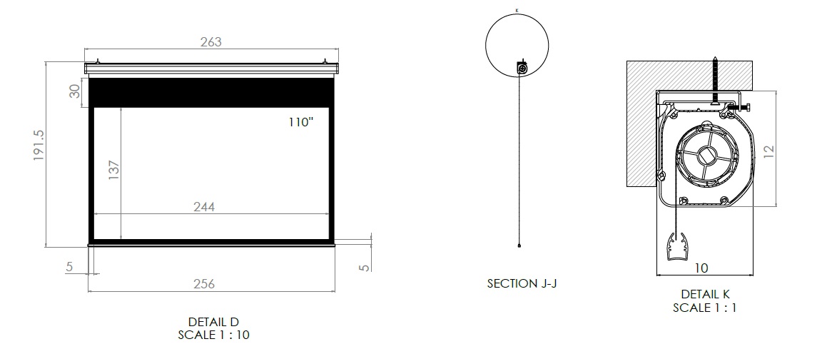 Leinwand mit Motor 16:9,weiss,110"/Gainfactor1.0 Tuchmasse 244x137cm, Schalter + Fernb. RF