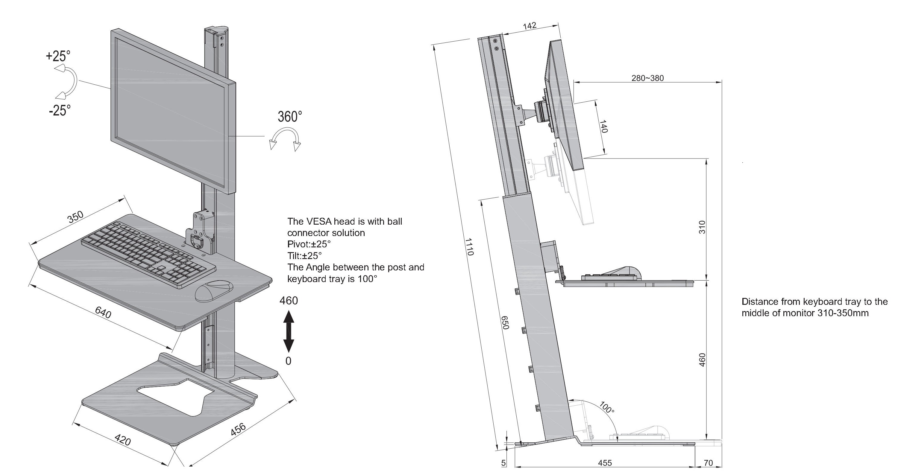 höhenverstellbar max. 460mm, Höhenverstellbar-