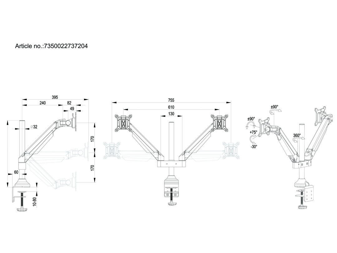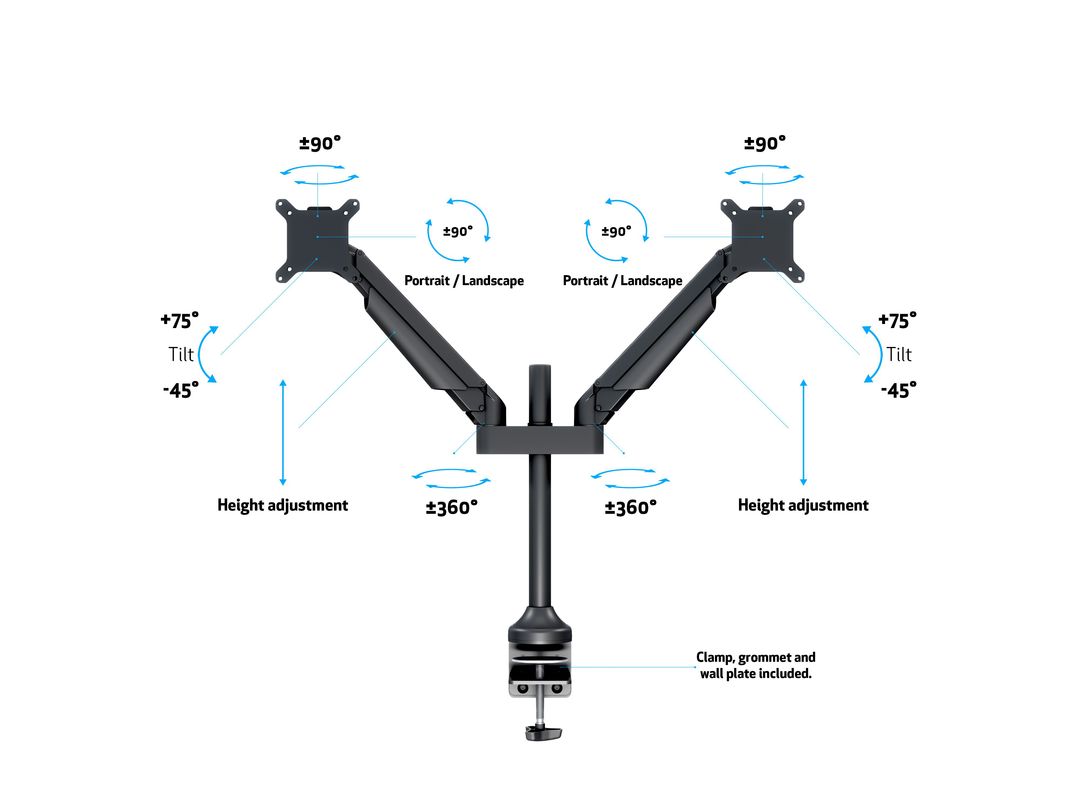 Monitorhalter Duo 32", Metall, schwarz VESA 100x100, min 2 x 2kg - max 2 x 10kg 3 Gelenke je 1... mehr