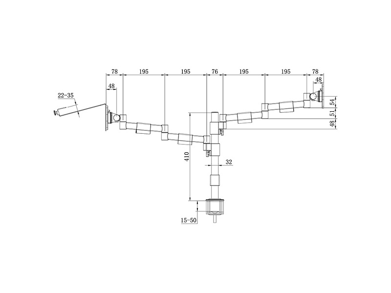 Vesa 75x75 - 100x100mm, Höhe 0-410mm,