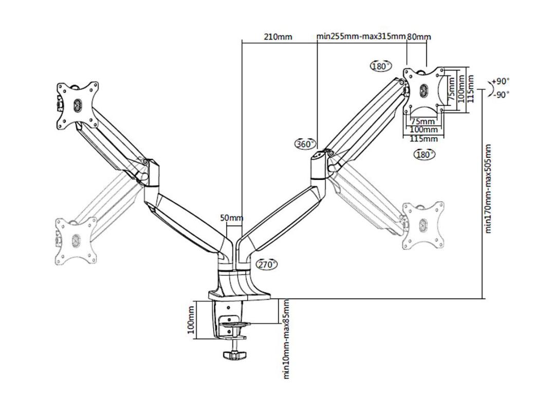 Für Tischdicke von 10-85mm, Tragkraft 2x1-9 kg,