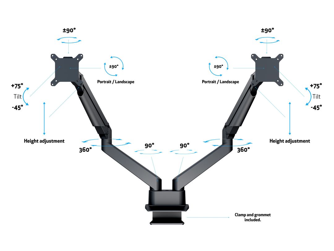 Monitorhalter Duo 32", Aluminium, schwarz VESA 100x100, min 2 x 2kg - max 2 x 10kg