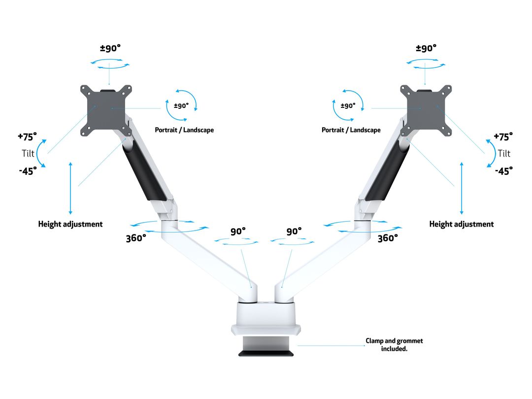 Monitorhalter Duo 32", Alum., weiss, rotierbar 90° VESA 100x100, min 2 x 2kg - max 2 x 10kg