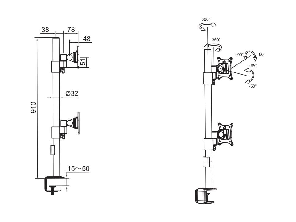Höhe 900mm,rotierbar 360°, neigbar +85/-60°,