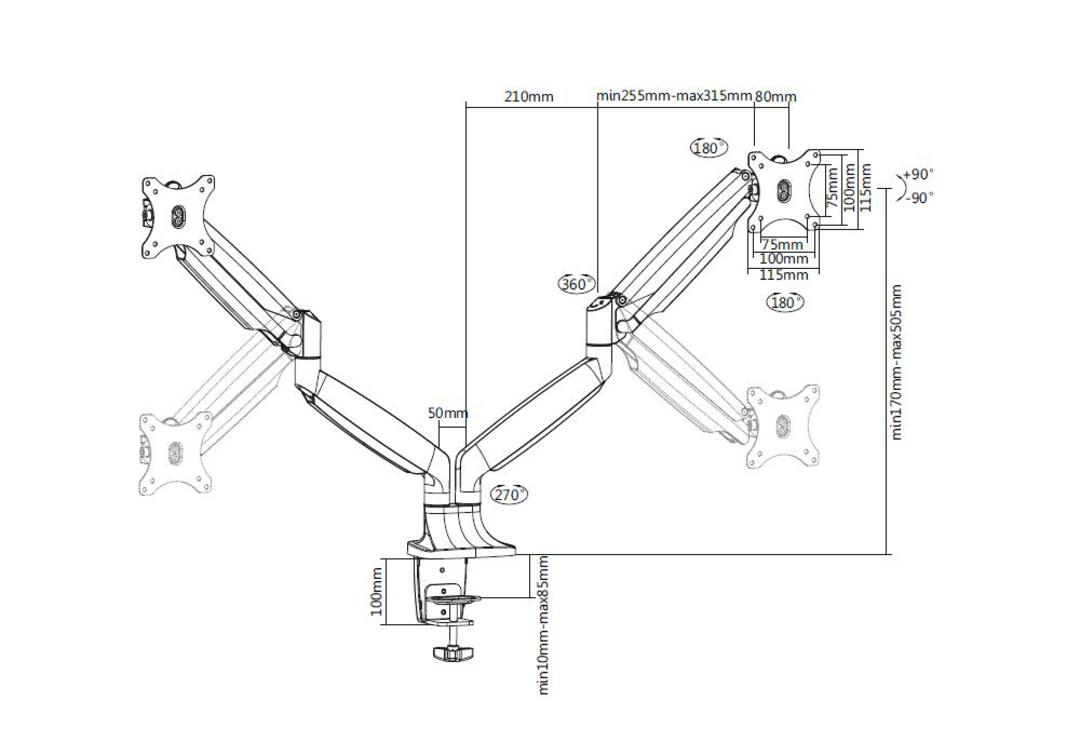 2x1-9 kg, Alu/Stahl, Vesa 75x75/100x100mm,