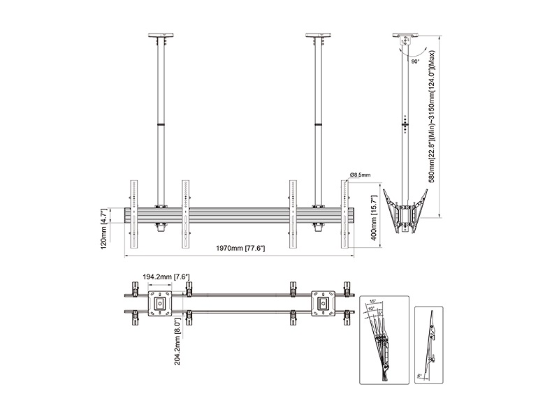 Produktinformationen "Deckenhalter 4x, 40" - 65", schwarz, VESA 100x"
