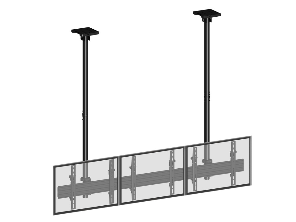 Deckenhalter 3x, 40" - 65", schwarz, VESA 100x 100-600x400, Stahl/Aluminium, max 3x30 kg