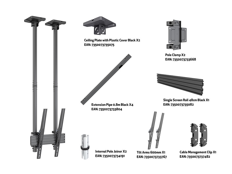 Deckenhalter, 40" - 100", schwarz, max 120 kg VESA100 -400x600, Stahl/Aluminium, neigbar15°