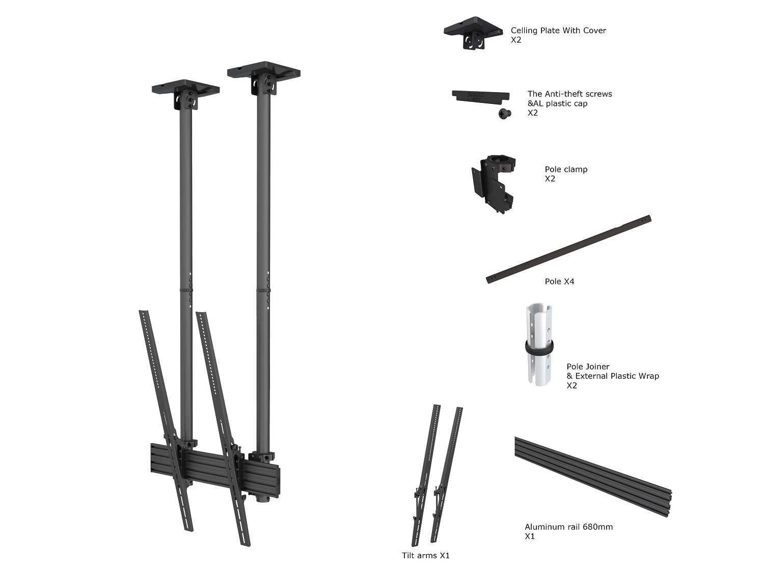 Produktinformationen "Deckenhalter, 40"-100", schwarz, neigbar 15°"