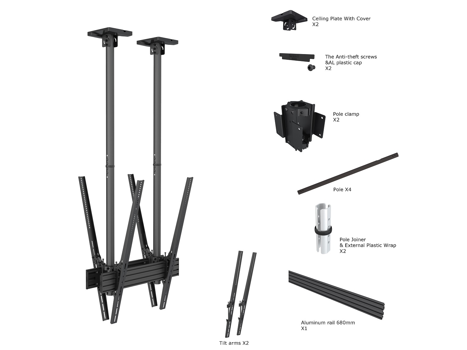 Produktinformationen "Deckenhalter, 2 x 40"-100", schwarz, neigber 15°"
