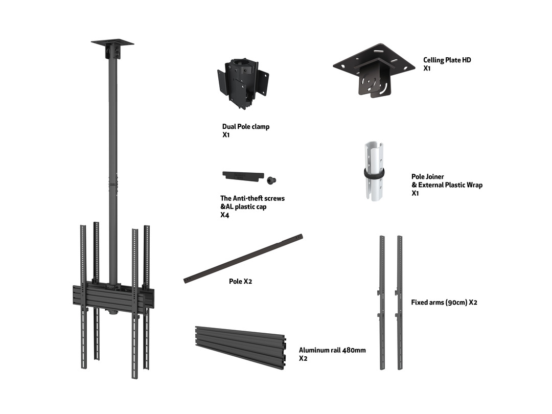 Deckenhalter Back to Back, 42" - 75", schwarz VESA 100-400x900,Stahl/Aluminium, max 2x45Kg