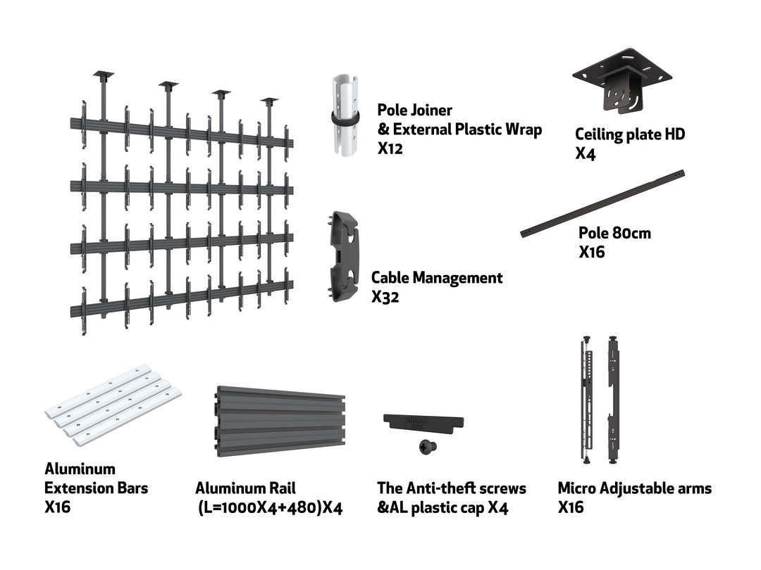 Produktinformationen "Deckenhalter Videowall, 16x, 32"-65", schwarz"
