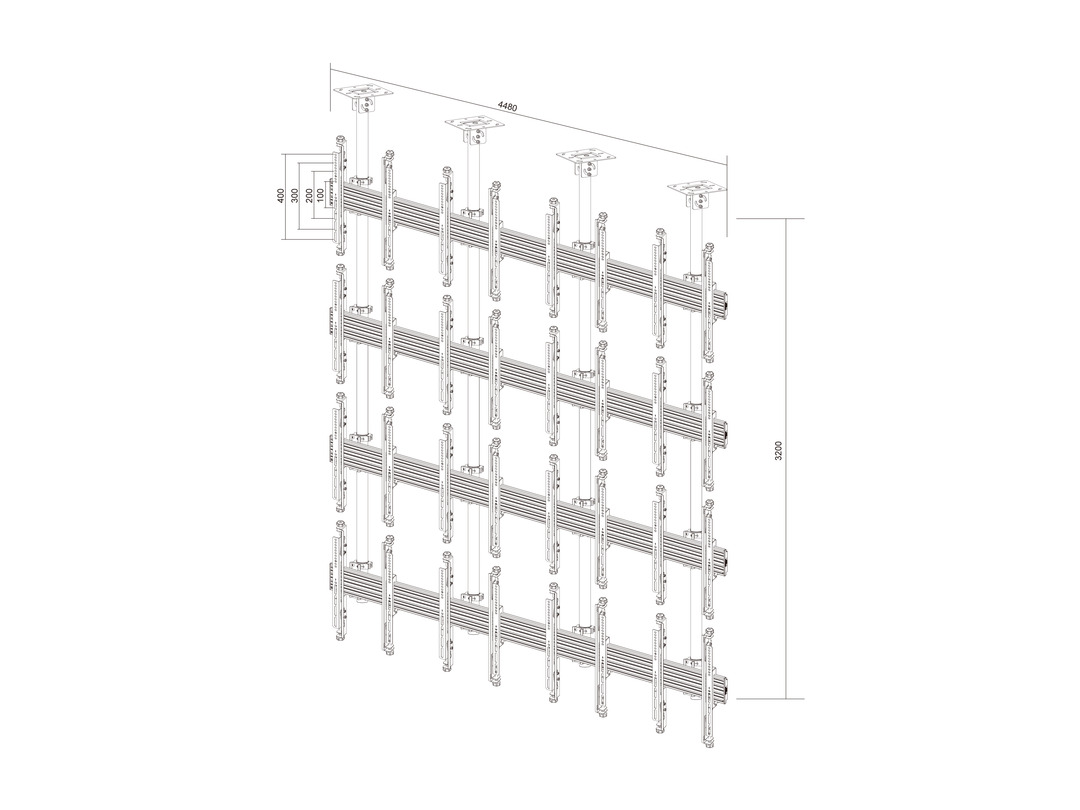Deckenhalter Videowall, 16x, 32"-65", schwarz VESA 100-600x400, Stahl/Alu, max 16x30 kg