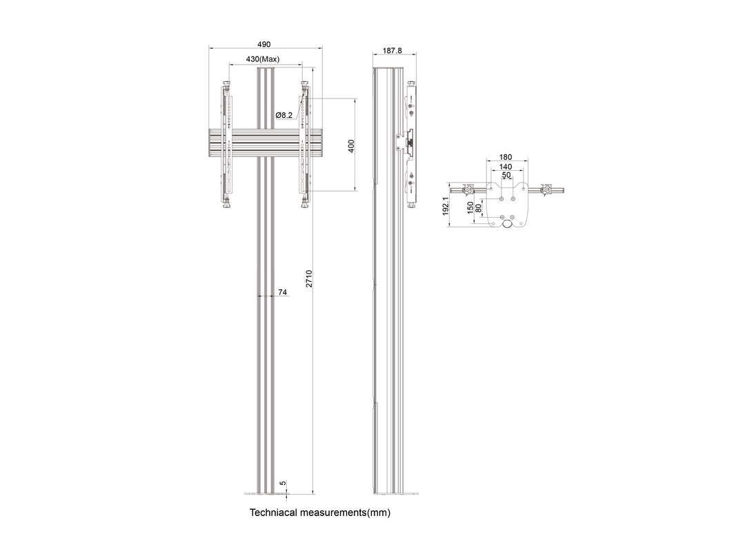 Höhe 2700mm, Microjustierung +/- 10mm, neig-