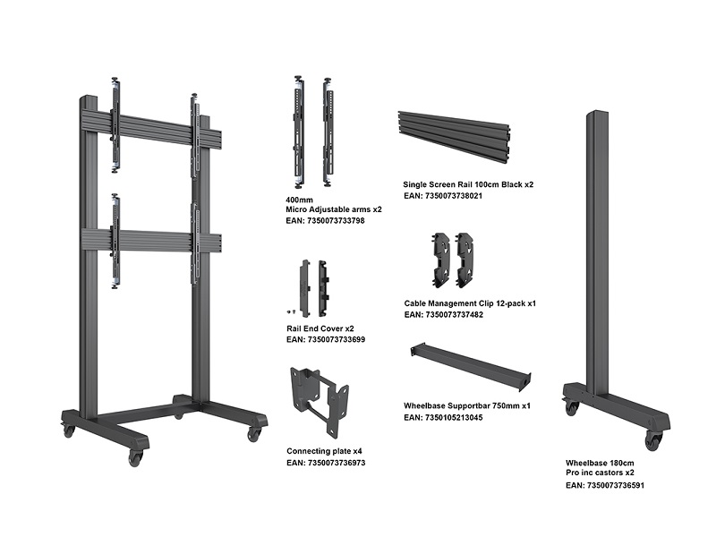 TV Multistandfuss für 2 Monitore von 46"-75", schwarz,VESA 100 - 1000x400mm, max. 2x50 kg