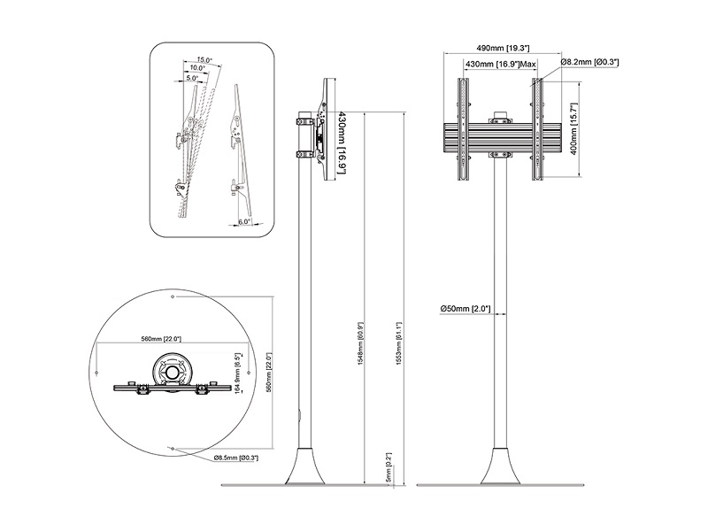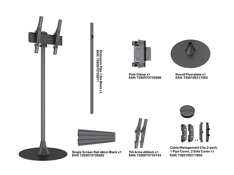 Bodenständer Round 1x, 32-65", Stahl/Aluminium