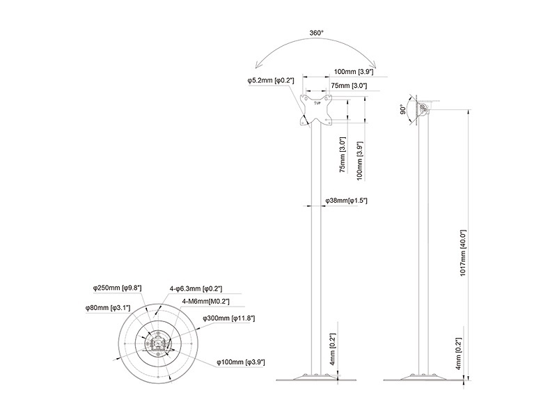 neigbar von - 0° bis +90°, schwenkbar 360°,