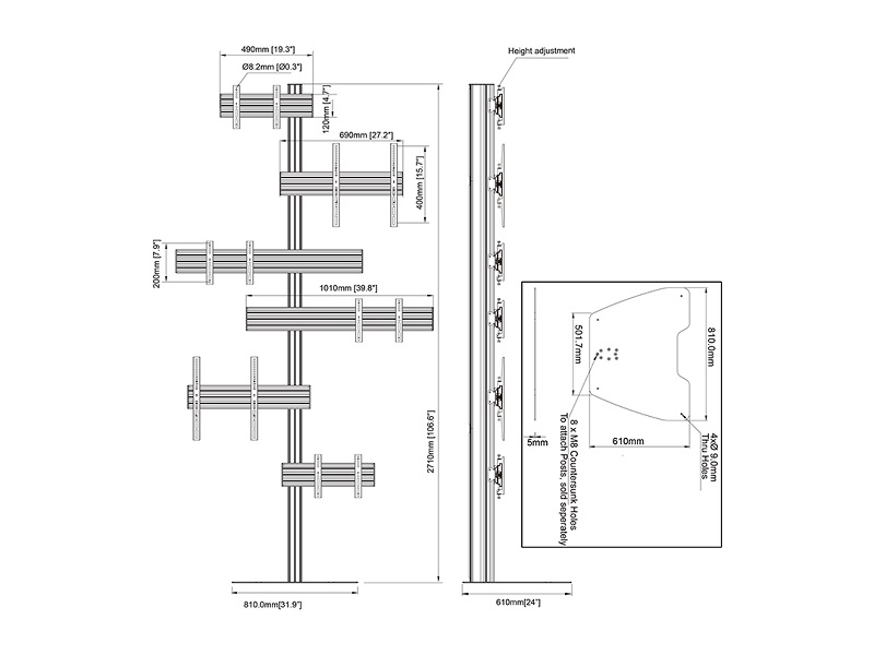 Produktinformationen "Bodenständer 6x, von 40"-65", Stahl/Aluminium"