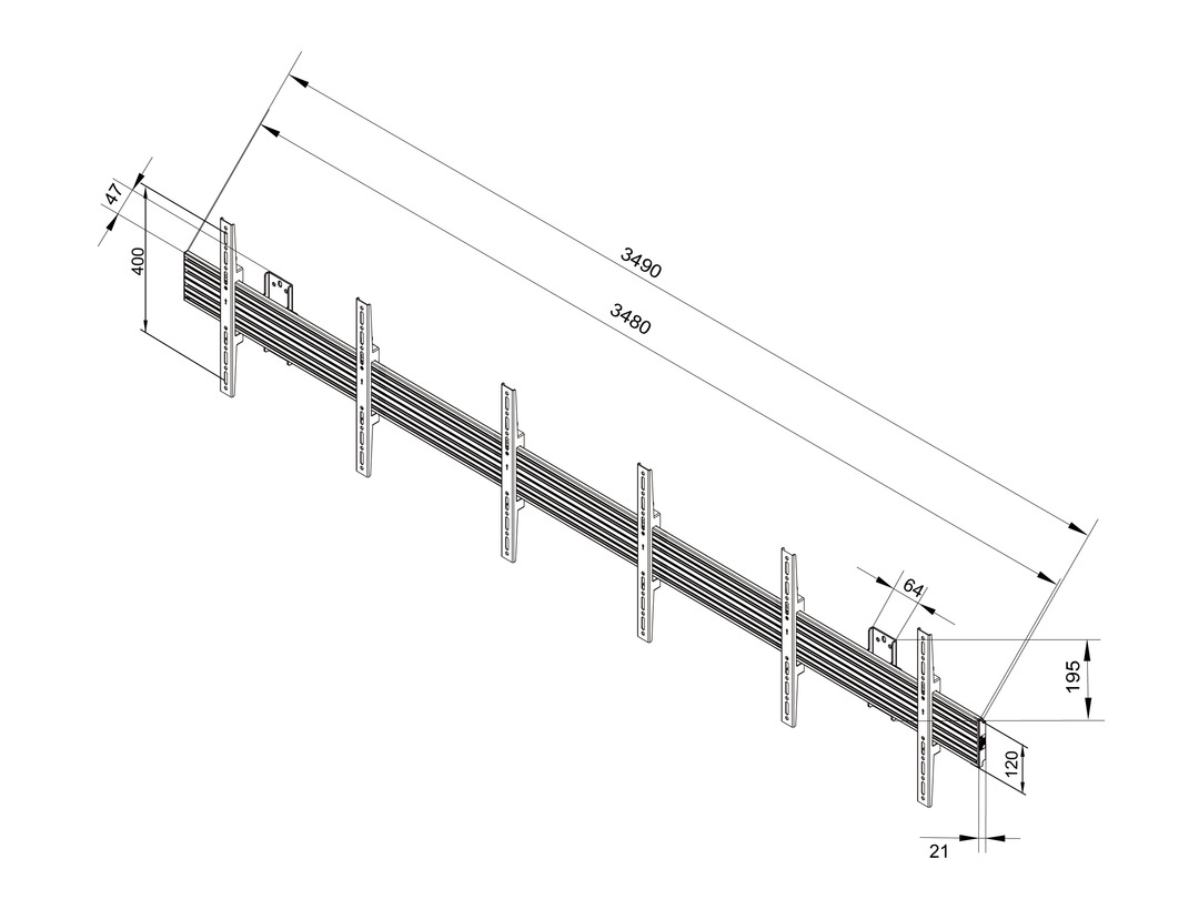 Zusatzhalter, Kabelmanagement, 348x43x7.5cm,