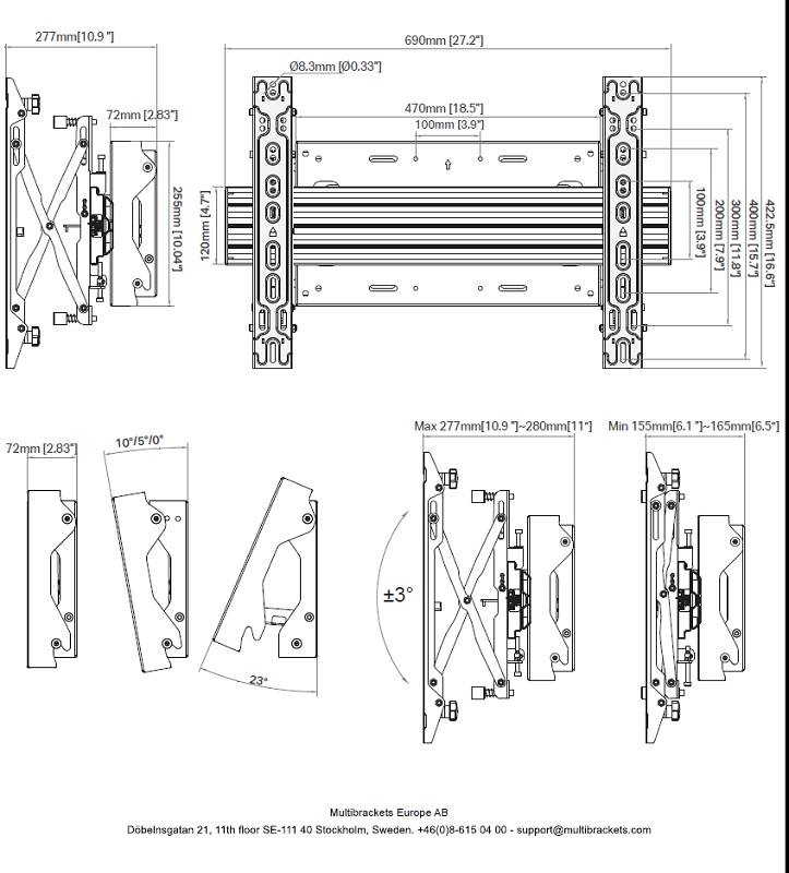 höhenverstellbar -15/+5mm, mit Mediabox,